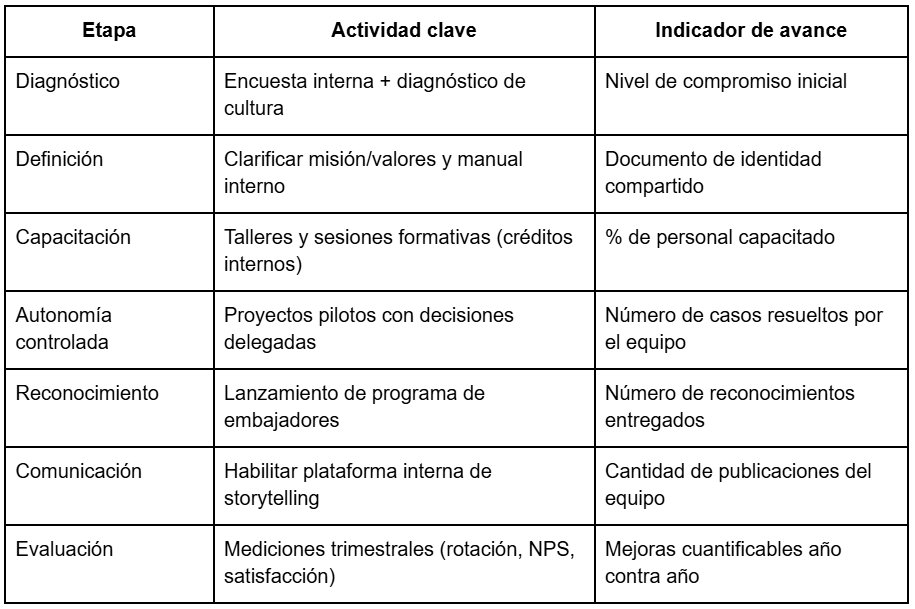La base de un embajador auténtico es su comprensión íntima de la marca. No basta con capacitar en procesos: es necesario incluir la misión, visión, valores y ADN del establecimiento.
